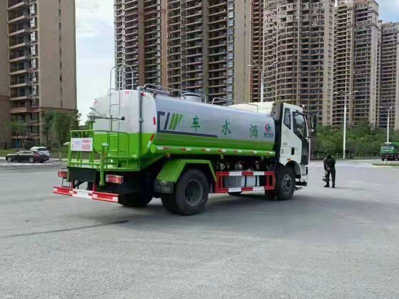 罐體采用4毫米厚武鋼產容積板焊接而成,內設防浪板,程力大功率灑水泵,可自吸水,加壓排水,前沖15米寬,后灑壓塵,側噴花灑噴頭,尾高綠化高位水炮,射程28米,可調節水柱、大中雨、毛毛雨等,可做臨時消防滅火用。 選裝配置:威龍泵、LED指示燈、氣動閥控制、噴藥機組、其它特殊要求等。 隨車附件:隨車工具1套、尖嘴噴頭2個、鴨嘴噴頭2個、花灑噴頭2個、水炮1個、吸水管2根、小工具鎖2個、各類密封圈及墊片若干。 隨車文件:整車說明書、保修手冊、整車合格證、底盤合格證、上戶發票、免征圖冊