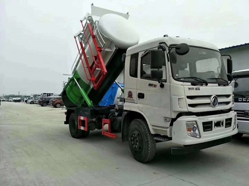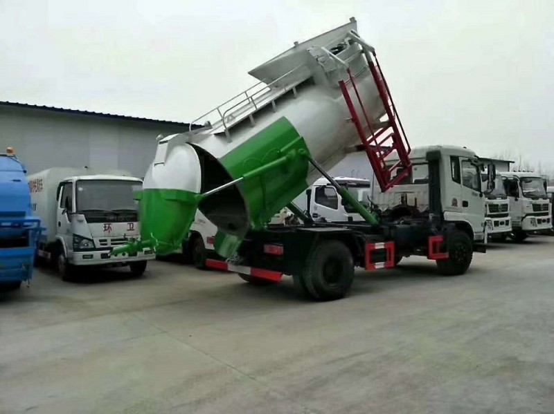 圓形碳鋼罐體,罐體厚度5mm,拉桿提升機(jī)帶上蓋聯(lián)動;后蓋液壓開啟;罐體舉升自卸。選裝內(nèi)軒推鏟卸料,帶渣液分離功能。餐廚垃圾車可分罐式和廂式。