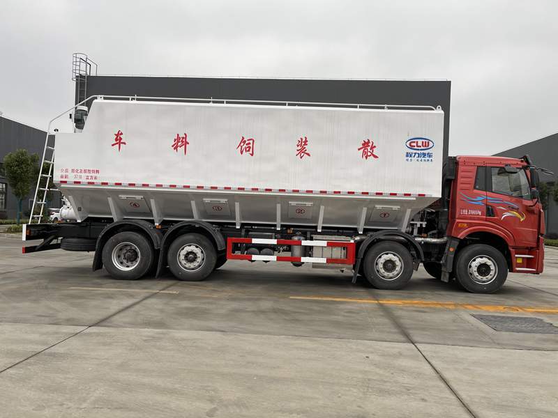 罐體材質(zhì)采用優(yōu)質(zhì)輕型鋼板,整車3條絞龍,由3個(gè)5.5KW電機(jī)帶動(dòng),頂部絞龍用液壓控制舉升,可左右旋轉(zhuǎn)180°。可根據(jù)用戶要求做多個(gè)獨(dú)立分倉(cāng),可以獨(dú)立控制各分倉(cāng)卸料順序和速度。
