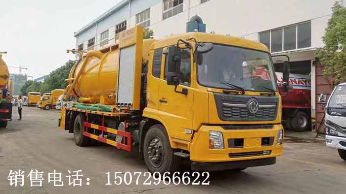 東風天錦天錦清洗吸污車, 公告型號:EZW5181GQWDH6。配置:210馬力發(fā)動機,容積:水:5m3 污:10m3;罐體厚度:8mm,封頭8mm,通潔250L高壓泵, 160玉柴發(fā)動機帶羅茨機組。顏色:上黃