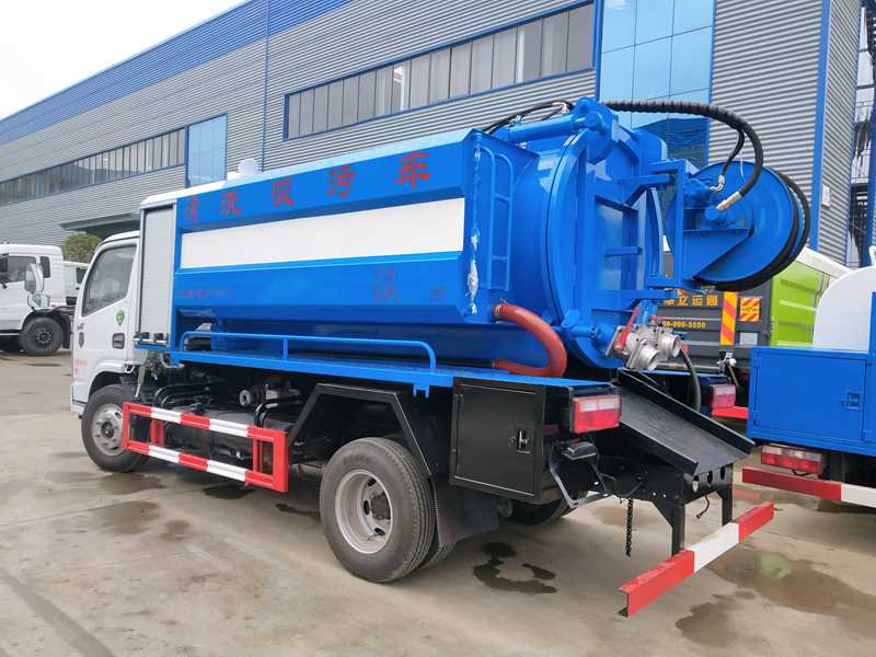 上裝配置 | 污水罐體容積:4方,水箱容積:2方。 吸污罐體材質:碳鋼, 板材厚度5mm。配大功率吸污泵,帶吸污管一根、罐體兩邊安裝液壓缸帶舉升功能,可以罐體舉升45度,后蓋液壓缸液壓打開,排泄更干凈,兩側安裝水箱,配備大功率高壓泵,流量:170L/min,10個高壓噴頭,60米高壓管。 |